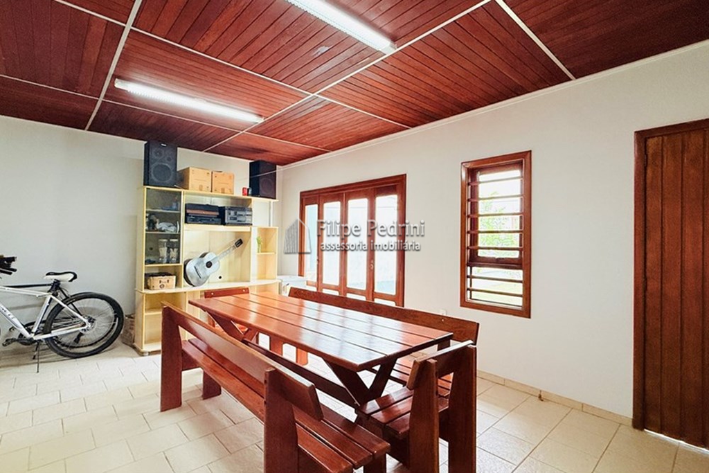 O grande diferencial desta residência revela-se na sua área de lazer. O salão de festas privativo é um verdadeiro complexo de entretenimento, equipado com churrasqueira, banheiro exclusivo e ainda mais um dormitório adicional, perfeito para hóspedes ou para criar um espaço multiuso (academia, atelier ou cinema).