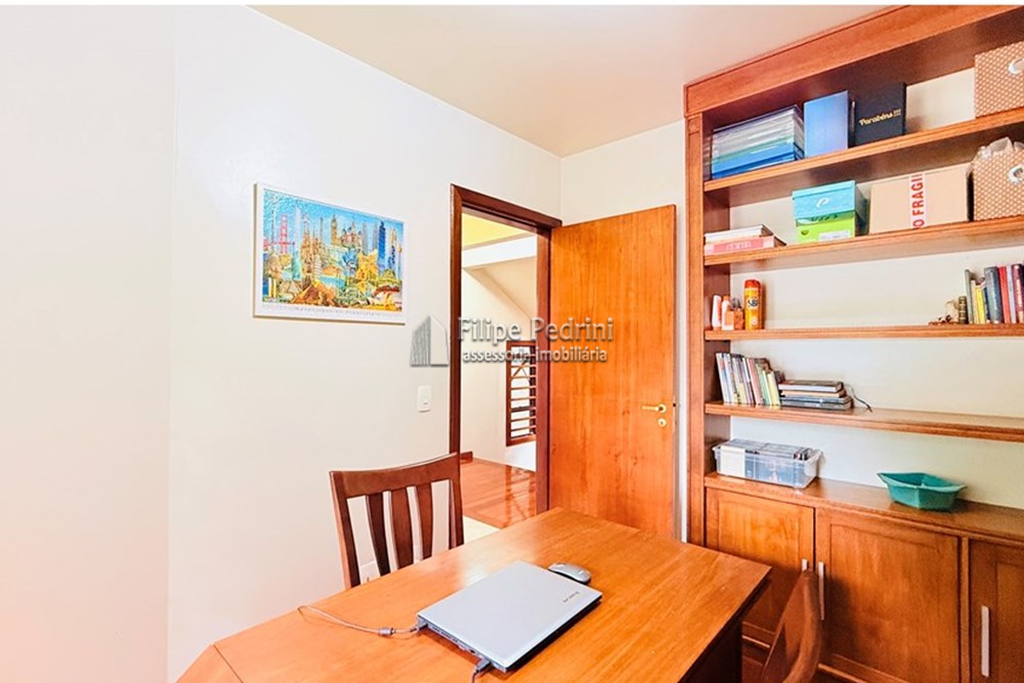 Ao entrar, você é recebido por ambientes integrados que exalam acolhimento. A área íntima conta com 4 dormitórios amplos, sendo um deles uma suíte master exclusiva. Imagine relaxar após um longo dia em uma banheira de hidromassagem privativa, em um ambiente desenhado para o seu descanso total. Para quem adotou o modelo de trabalho híbrido ou precisa de um espaço de estudos silencioso, o escritório planejado oferece o ambiente perfeito para a produtividade sem sair de casa.